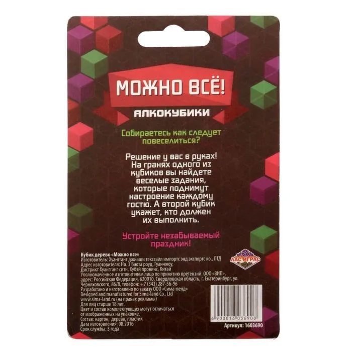 Купить кубик "можно все", алкокубики для принятия решений от 60 руб. с доставкой до пункта выдачи в Балтийске. Интернет магазин ДекаМаркет. Оплата при получении.